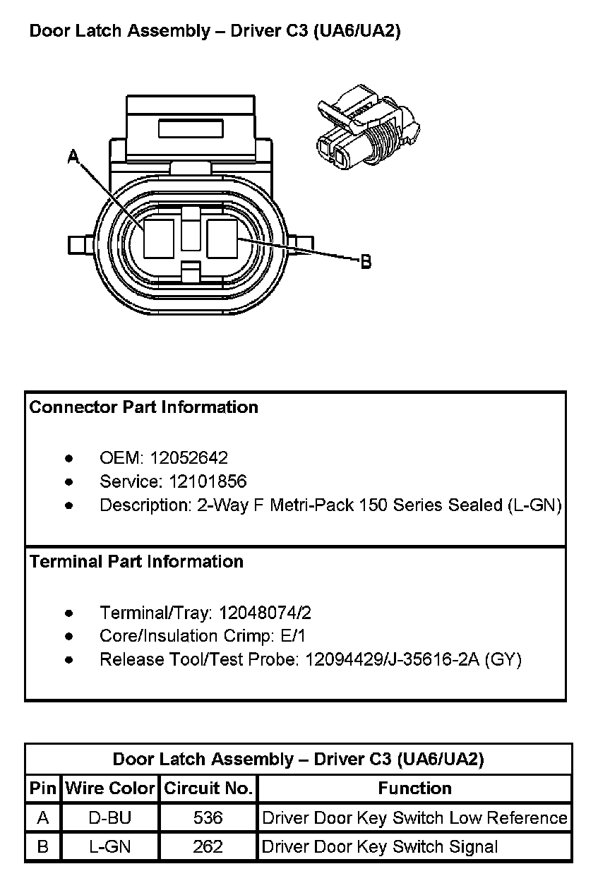 Door Latch Assembly - Driver C3 (with RPO Codes UA6/UA2):