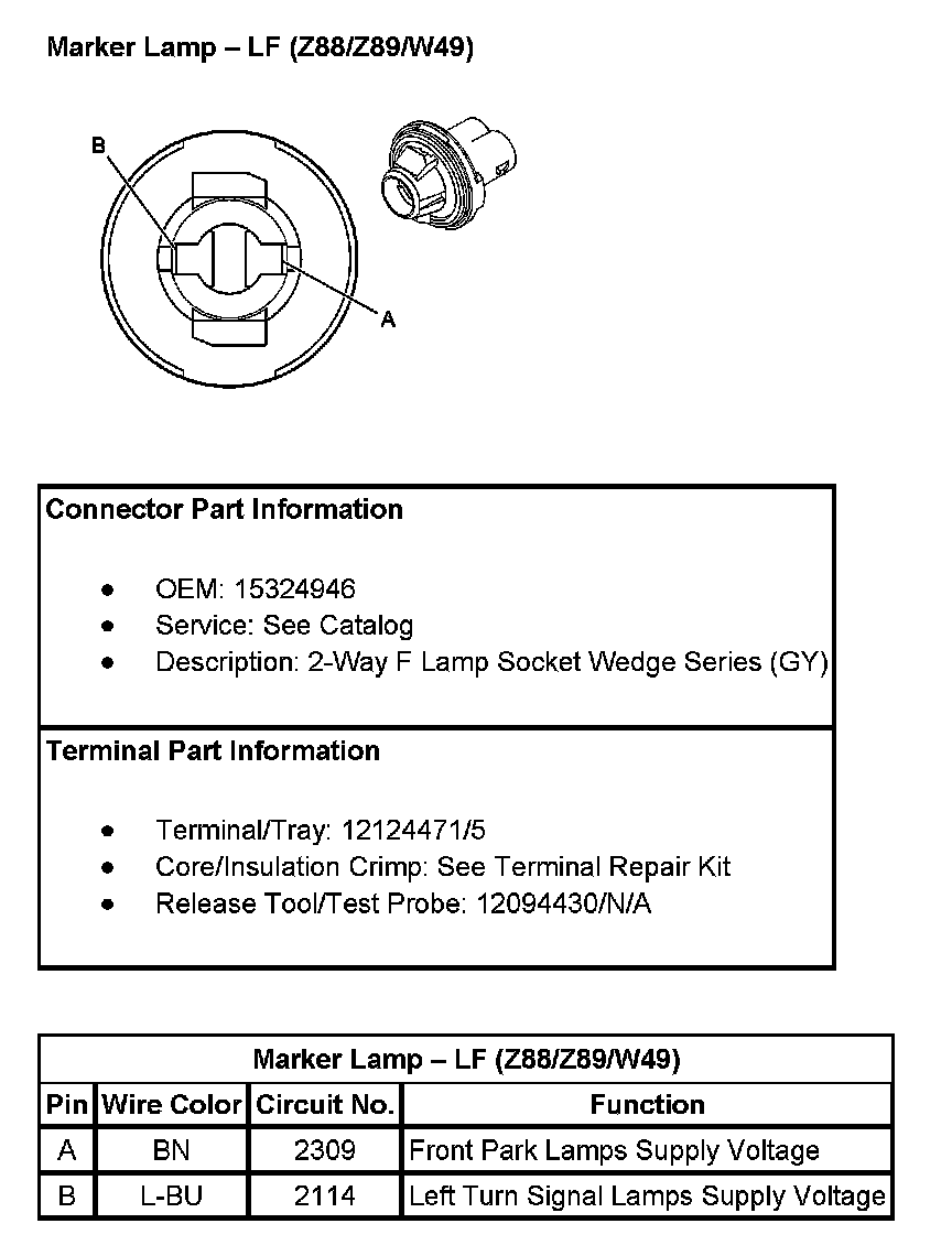 Marker Lamp - LF (With RPO Codes Z88/Z89/W49):