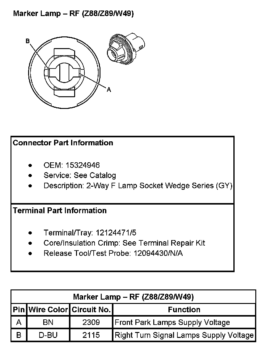 Marker Lamp - RF (With RPO Codes Z88/Z89/W49):