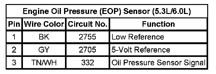 Engine Oil Pressure (EOP) Sensor (5.3L/6.0L)