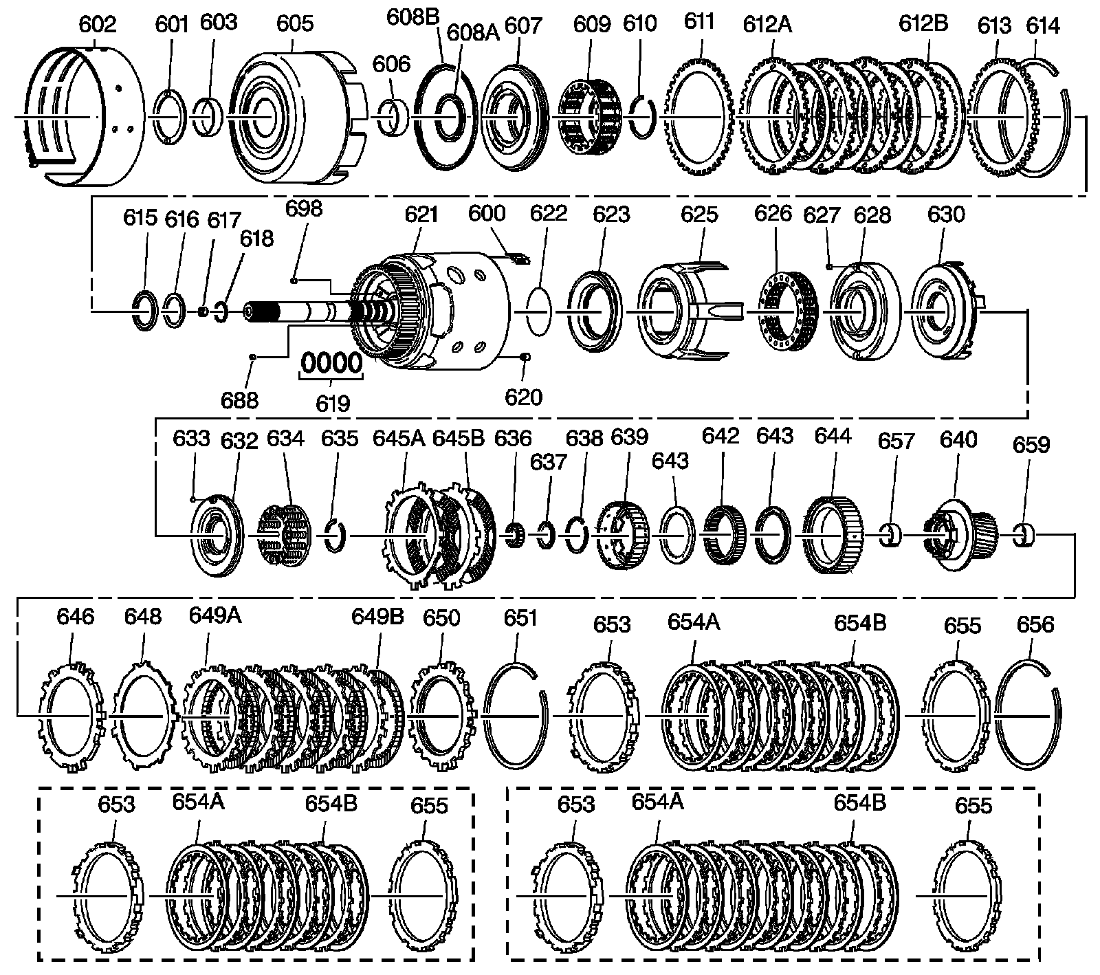 654a - 3rd and 4th Clutch Plate Assembly - Fiber - Quantity Model Dependent 5, 6 or 7 Plates