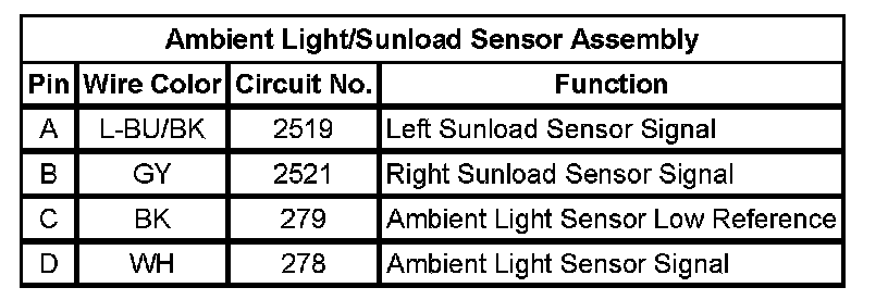 Ambient Light/Sunload Sensor Assembly