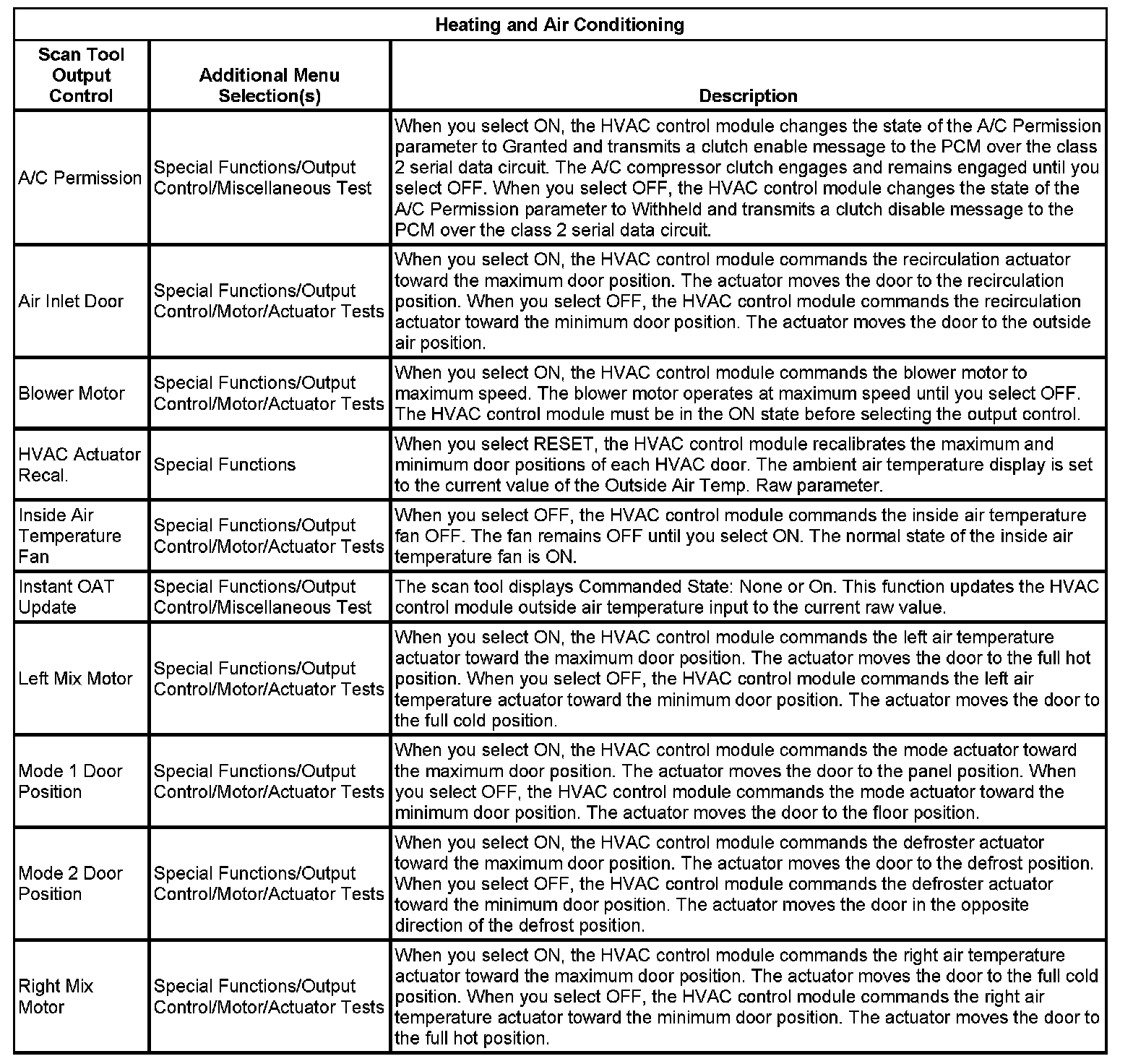 Scan Tool Output Controls