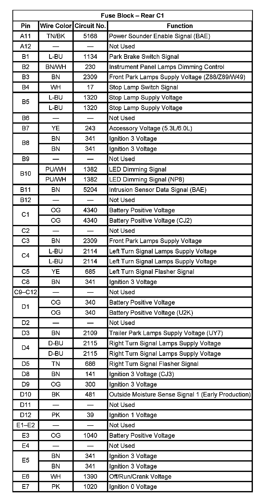 Fuse Block - Rear C1 (Pin A11 To E7):