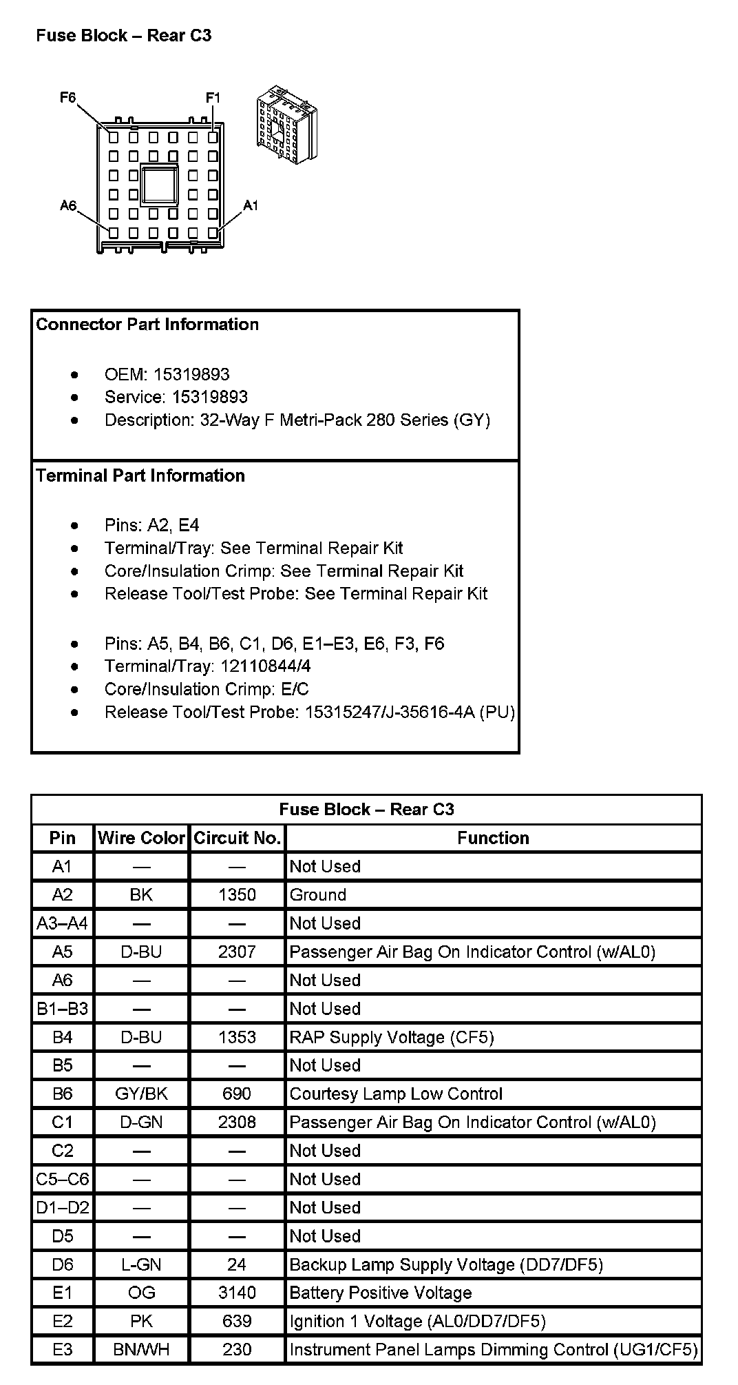 Fuse Block - Rear C3 (Pin A1 To E3):