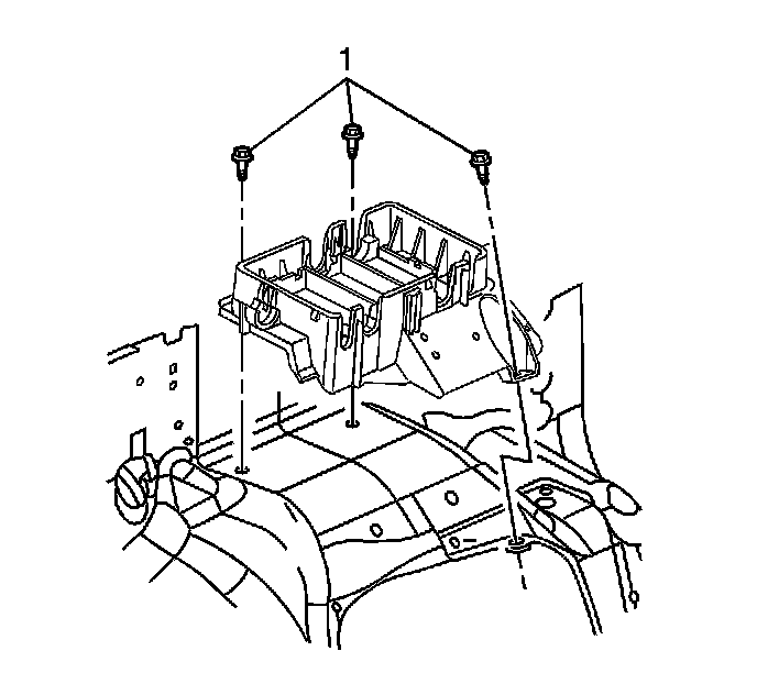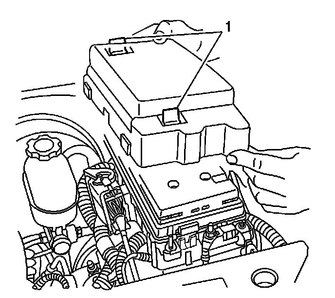 5. Install the fuse relay center cover (1) over the relay center bolts. Press downward to engage the tabs.