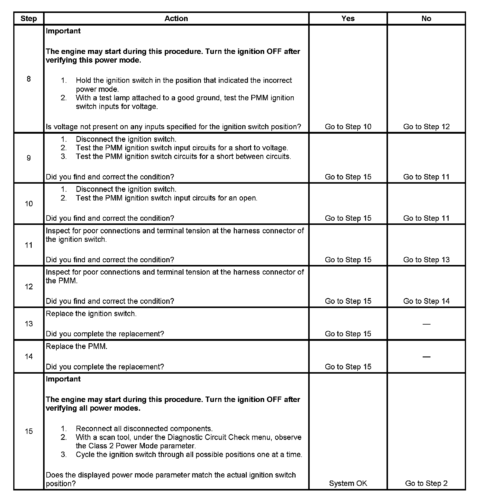 9. If any ignition switch parameters that should be inactive in the present ignition switch position are active, 2 ignition switch signal circuits may be shorted together.