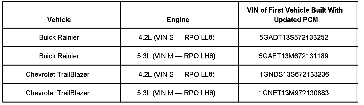 Technicians are to update the Powertrain Control Module (PCM) software in vehicles built prior to the VIN breakpoints shown.