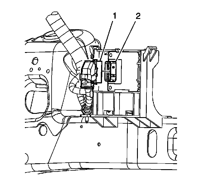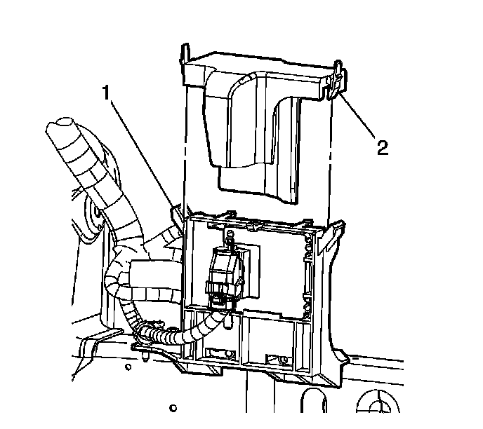 9. Ensure the ECM/TCM cover retainers (2) are fully engaged with the ECM/TCM bracket (1).