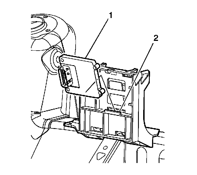 5. Insert the TCM (1) into the retaining slot of the ECM/TCM bracket (2).