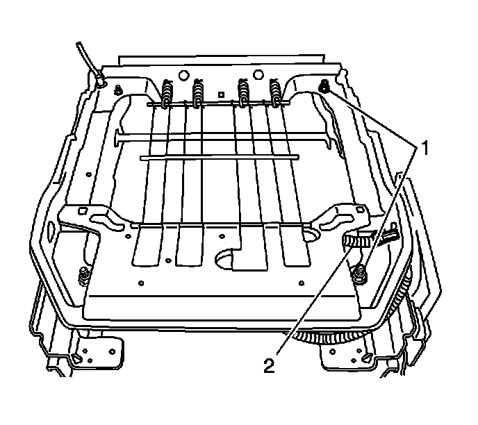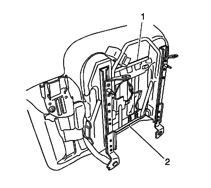 5. Remove the screws (2) that retain the lumbar adjustment mechanism (1) to the seat adjuster.