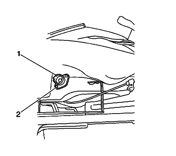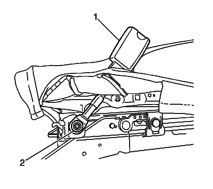 11. Remove the bolt (2) securing the seat belt buckle assembly (1) to the seat adjuster.