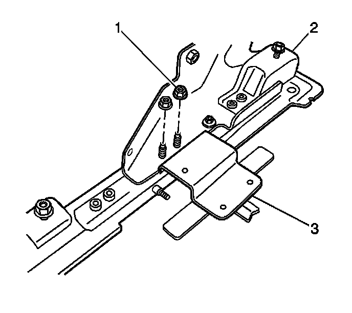 16. Remove the 2 nuts (1) securing the seat position switch (3) to the seat adjuster (2).