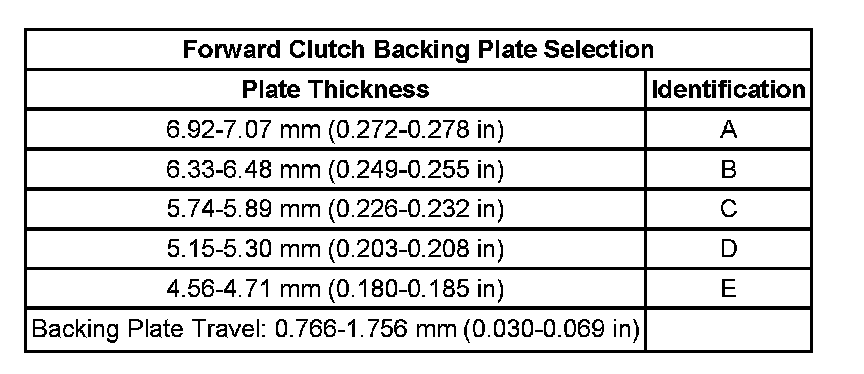 Forward Clutch Backing Plate Selection: