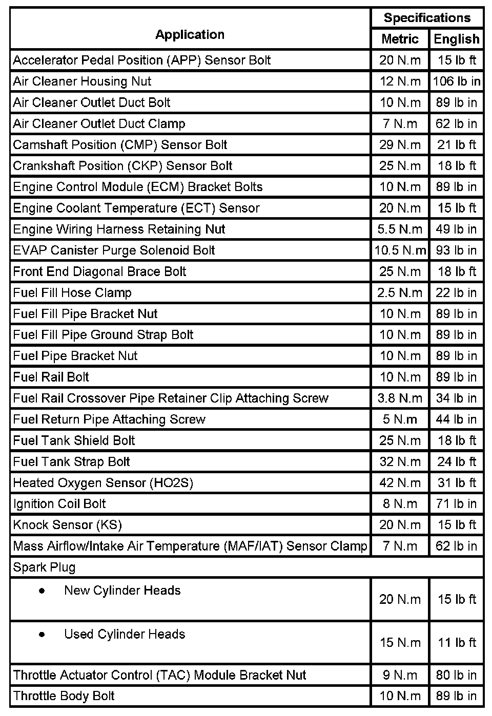 Fastener Tightening Specifications