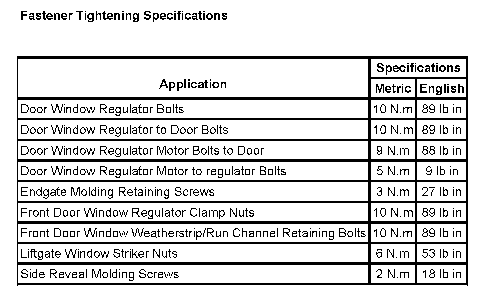 Fastener Tightening Specifications: