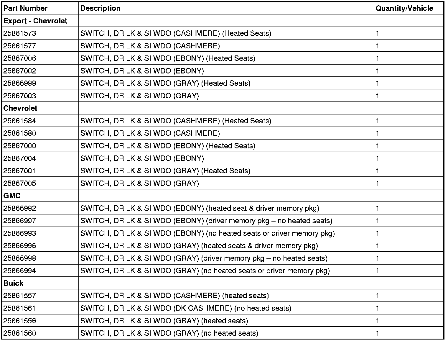 All involved vehicles are identified by Vehicle Identification Number on the Applicable Warranties section in GM Global Warranty Management system. Dealership service personnel should always check this site to confirm vehicle involvement prior to beginning any required inspections and/or repairs. It is important to routinely use this tool to verify eligibility because not all similar vehicles may be involved regardless of description or option content.