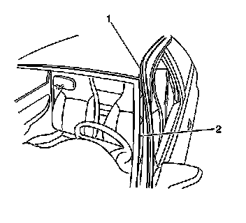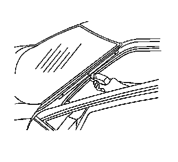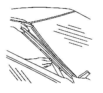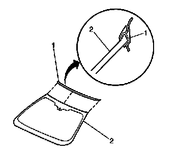 12. Remove the upper windshield reveal molding (1).Grasp the lower corner of the windshield reveal molding by hand and slowly pull the reveal molding away from the windshield.