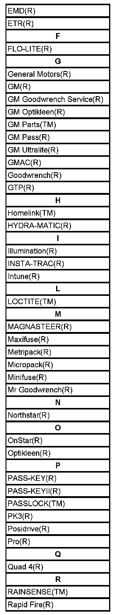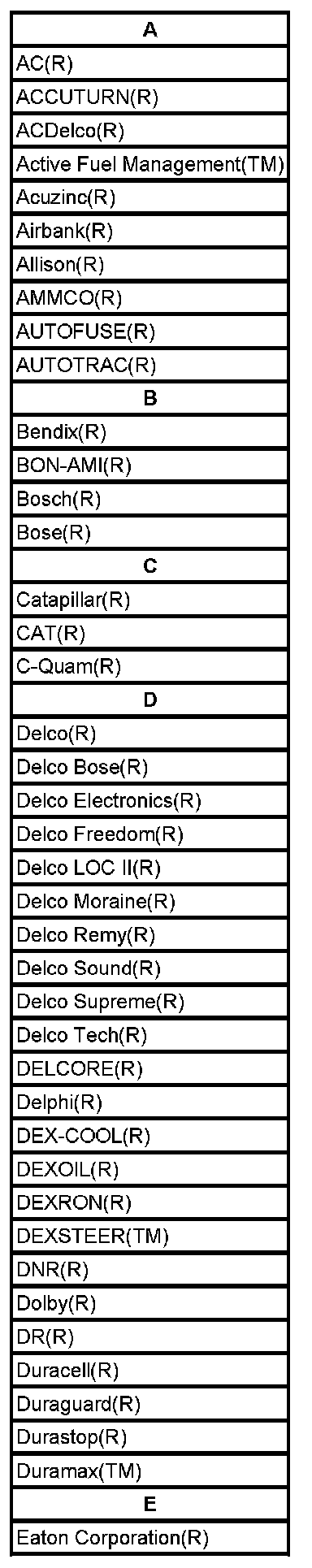 Listed below are Registered Trademarks ((R)) or Non-Registered Trademarks ((TM)) which may appear in this Service Data.