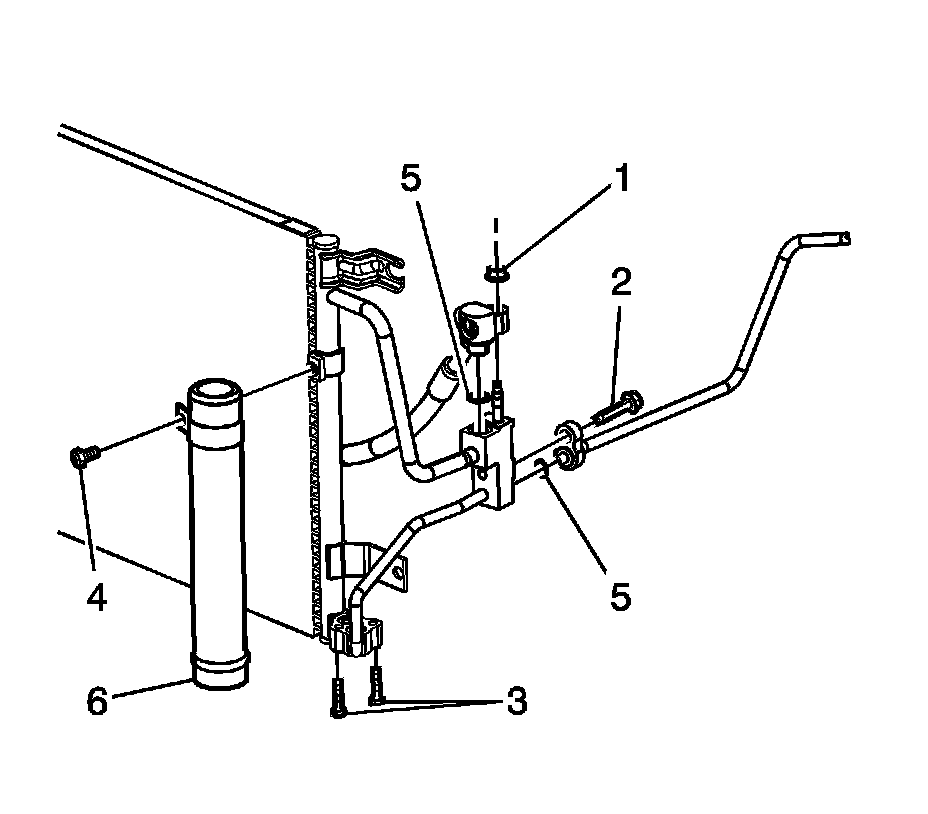 3. Remove the receiver dehydrator upper bracket screw (4).