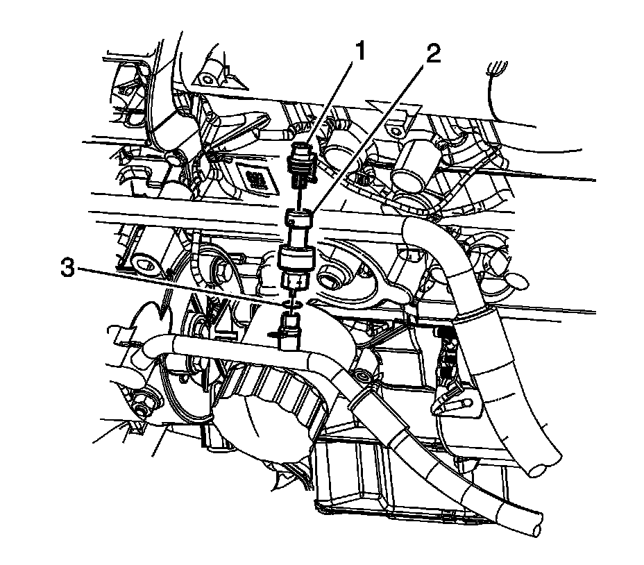 1. Disconnect the air conditioning (A/C) refrigerant pressure sensor electrical connector (1).