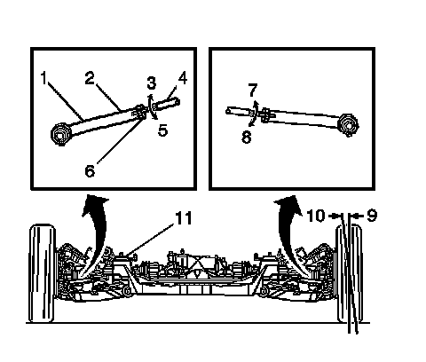 2. Adjust the toe to the proper setting by turning the inner link adjustment hex (4). Refer to Wheel Alignment Specifications.