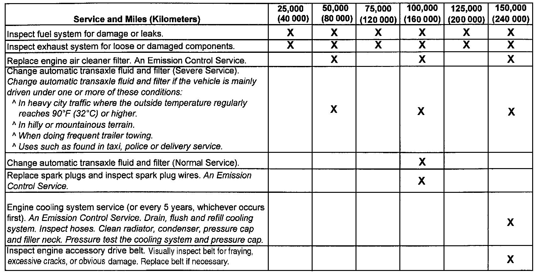 service (I or II) after the indicated miles (kilometers) shown for each item.