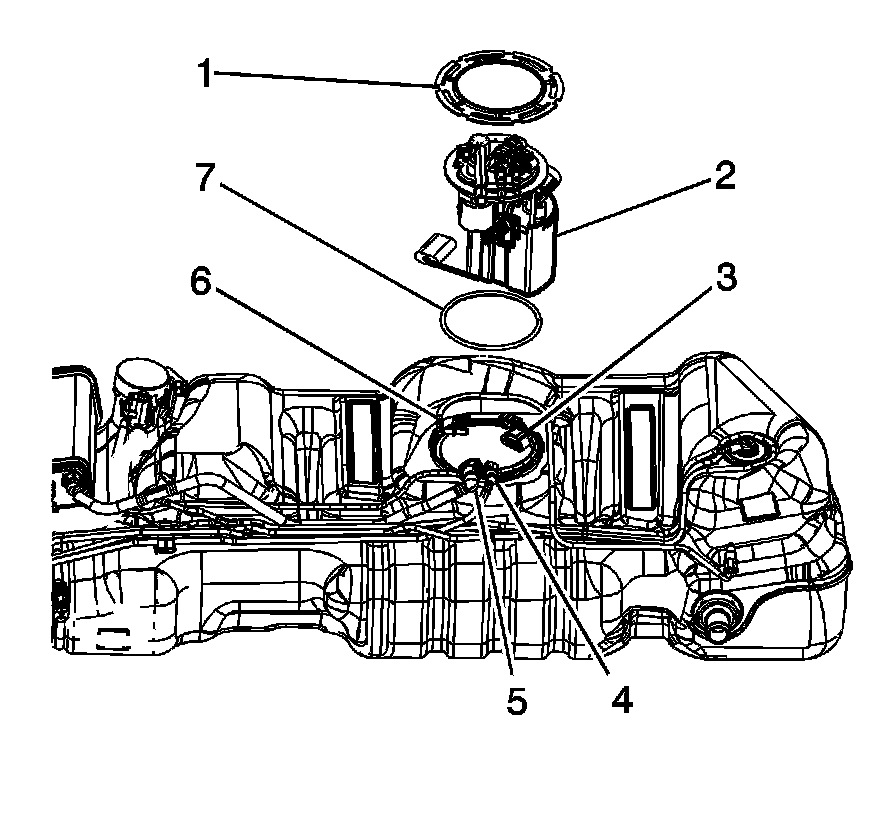1. Position a NEW fuel tank module seal (7) on the fuel tank.