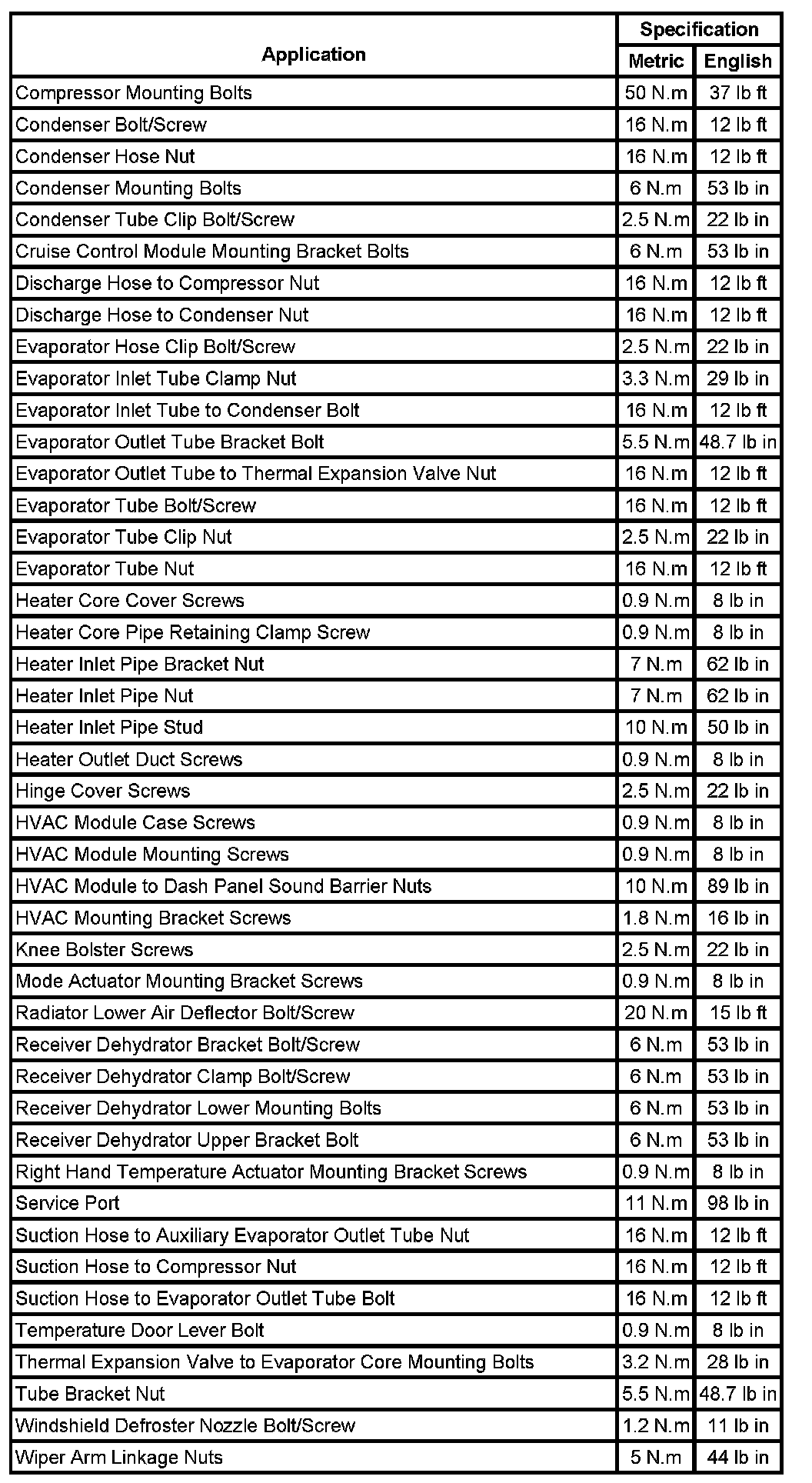 Fastener Tightening Specifications