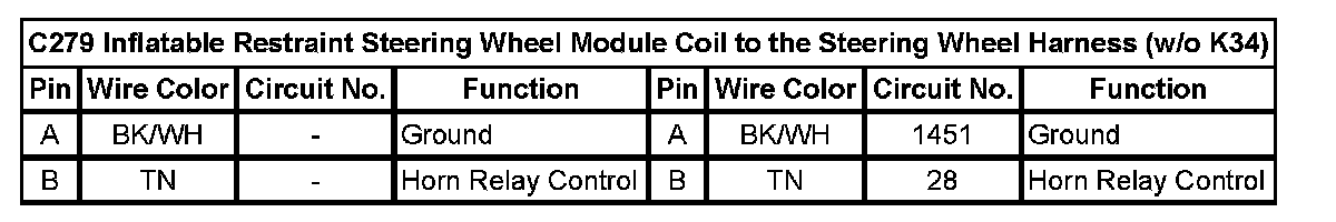 C279 Inflatable Restraint Steering Wheel Module Coil to the Steering Wheel Harness (w/o K34)