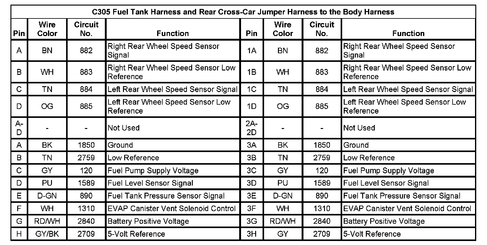 C305 Fuel Tank Harness and Rear Cross-Car Jumper Harness to the Body Harness
