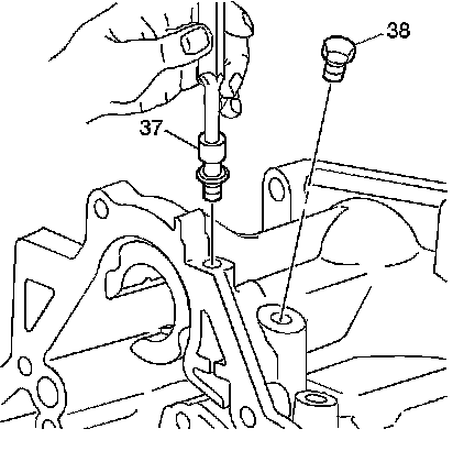 2. Apply sealant GM P/N 12345382 to the oil pressure test hole plug (38).