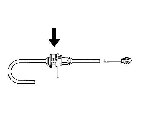 8. Pull the automatic transaxle range selector cable terminal toward the pin on the automatic transaxle range selector lever. The automatic transaxle range selector cable adjuster spring should compress as the terminal is moved toward the pin.