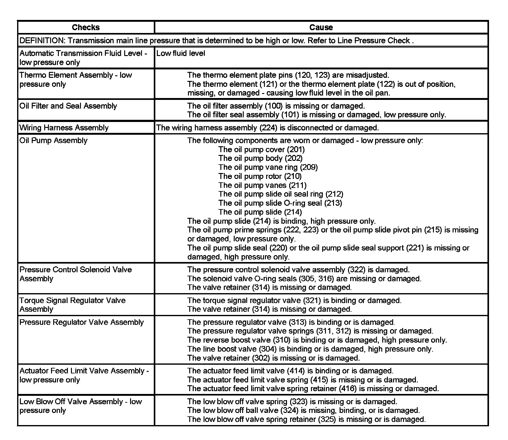 Incorrect Line Pressure: