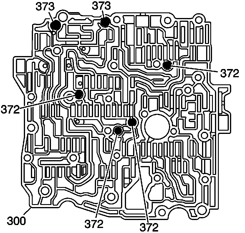5. Install the valve body bolts (374, 381, 384).