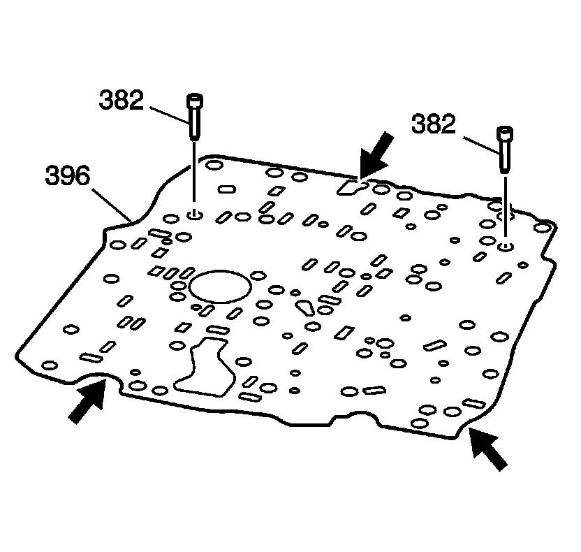 4. Install the spacer plate and gasket assembly (396) and the valve body (300).