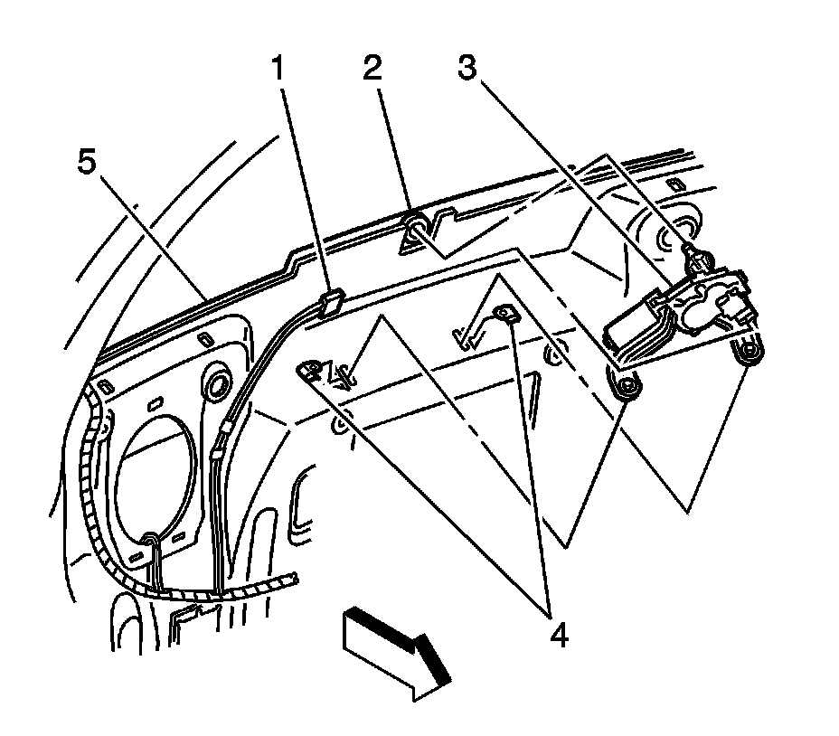 7. Remove the rear wiper motor (3) from the liftgate (5).