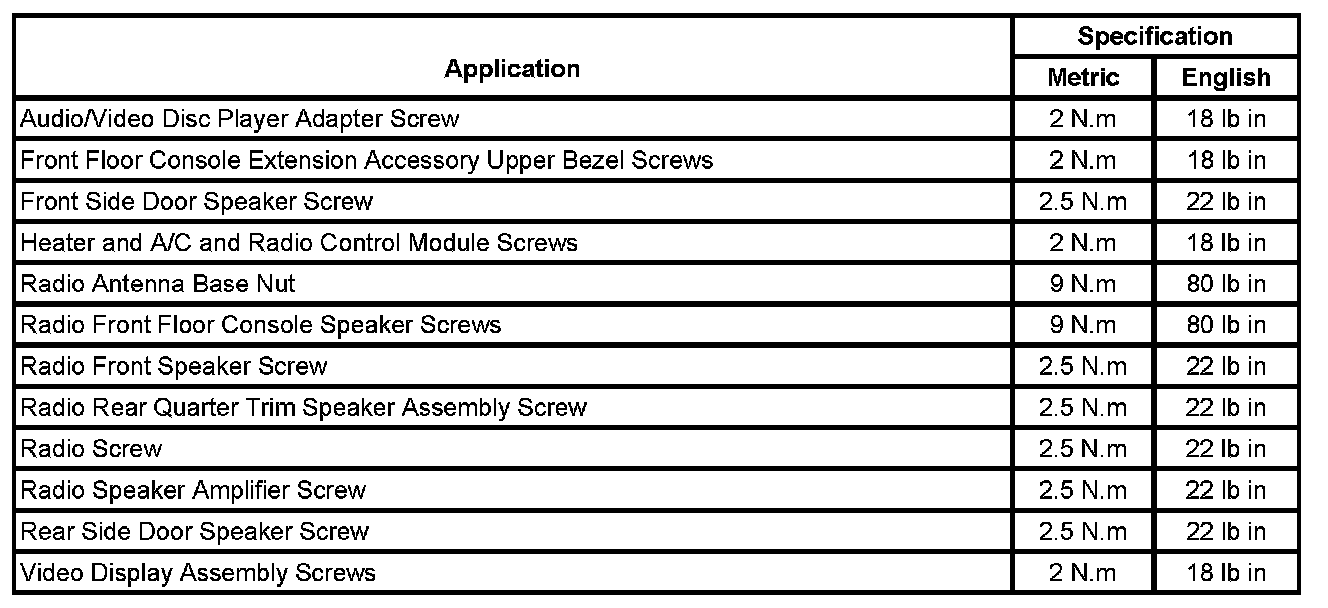 Fastener Tightening Specifications