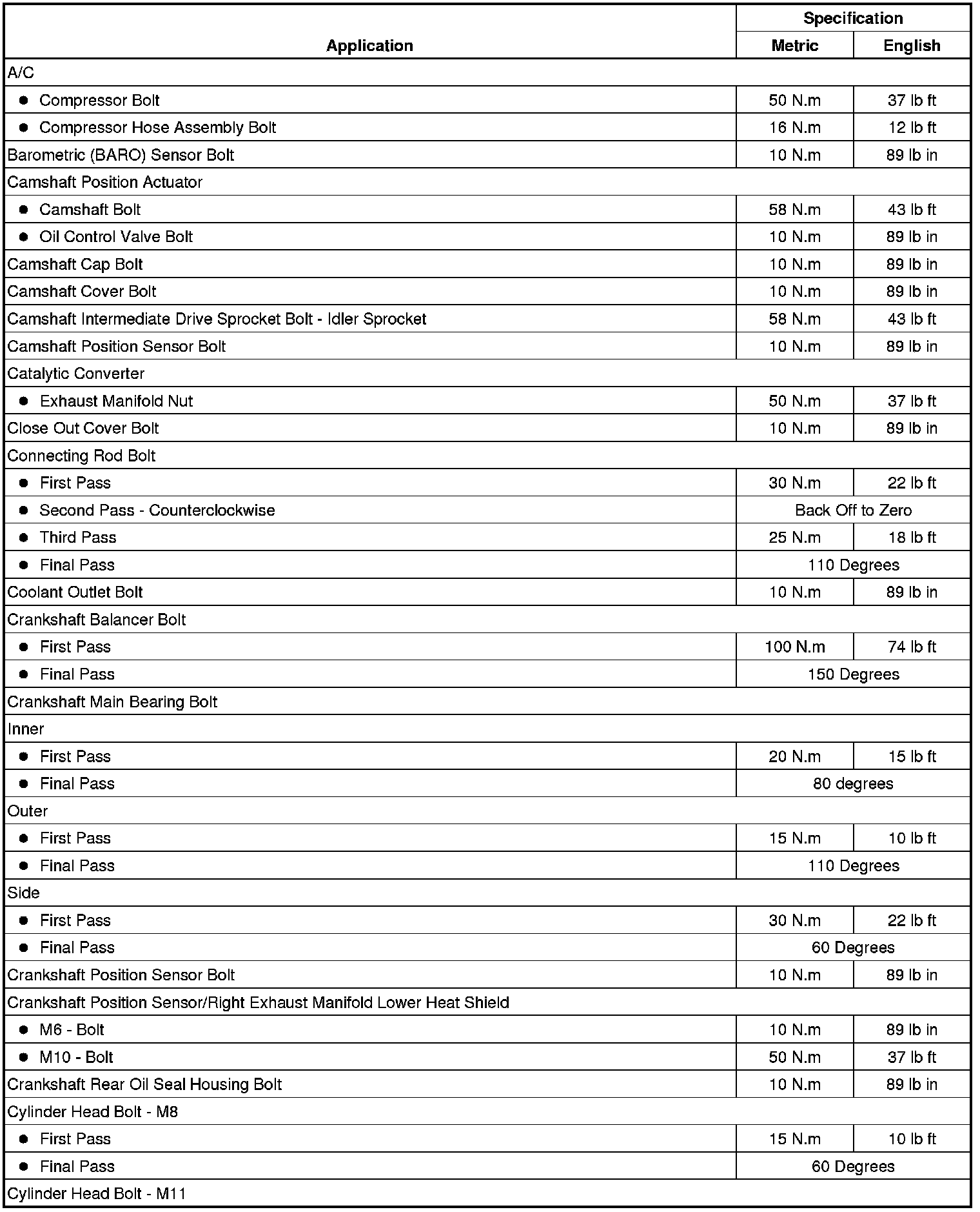 Fastener Tightening Specifications