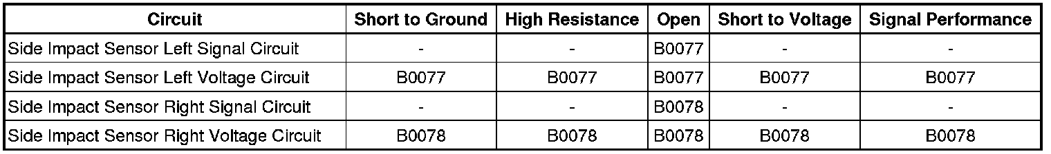 If DTC B0077 was current, replace the left SIS. If DTC B0078 was current, replace the right SIS. After replacement, refer to Repair Verification.