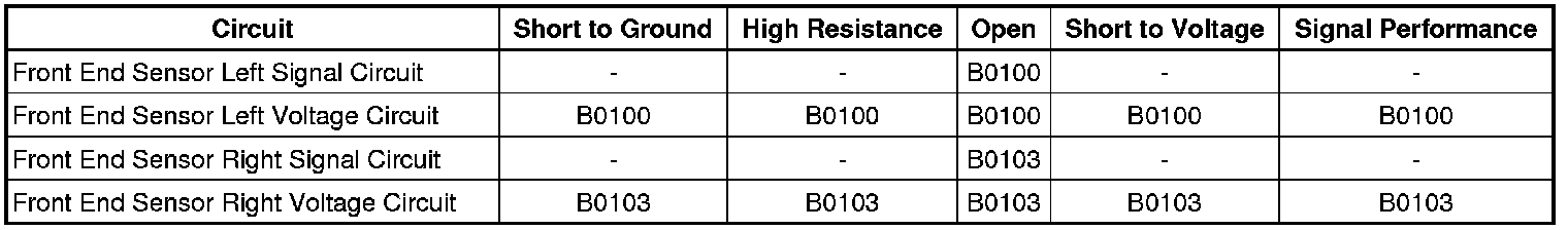 B0100 for Front End Sensor 1 or B0103 for Front End Sensor 2