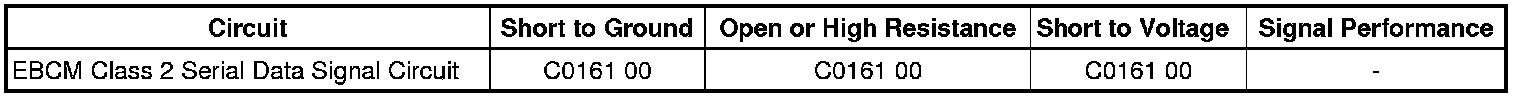 The brake pedal position (BPP) sensor is an input to the body control module (BCM). The BCM then sends a serial data message to the electronic brake control module (EBCM) and other electronic control modules. The BPP sensor is a potentiometer type sensor with 3 circuits: a 10-volt reference circuit, a low reference circuit and a brake apply sensor signal circuit. The BCM supplies the 10-volt reference to the BPPS. Varying the level of application of the brake pedal changes the BPPS voltage range from less than 1 volt to greater than 9 volts through the BPPS signal circuit. When the conditions for running this DTC are met, the BCM will use the brake fluid pressure sensor to determine if the predicted operating range of the BPPS voltage is correct. If the BCM detects the BPPS voltage is out of the predicted range, the BCM will send a class 2 message to the EBCM to set DTC C0161. The EBCM will set a DTC C0131 or C0132 for a brake fluid pressure sensor fault. The BCM will set DTC C0277, C0278, or C0283, and C0870.