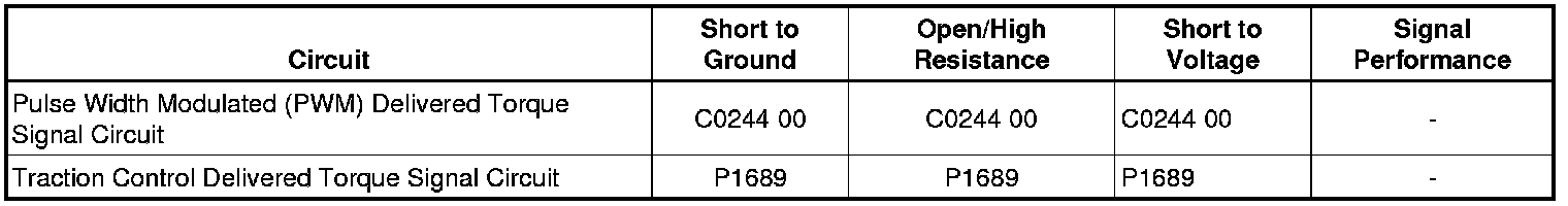 DTC C0244 can be set anytime when ignition voltage is present. A malfunction exists if the PWM signal is out of range or no signal is received for a period of 2 seconds.