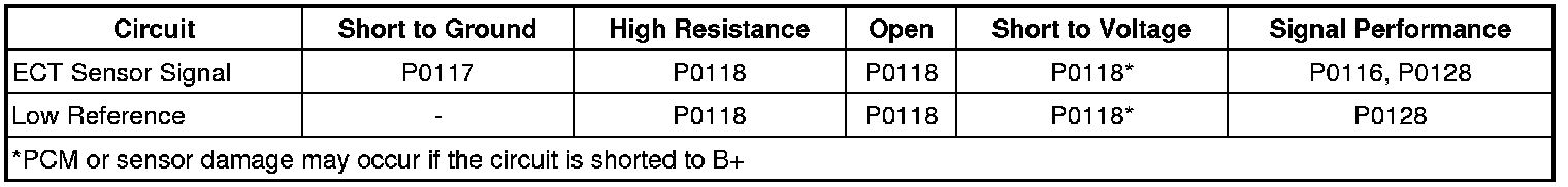 * If a short to a separate voltage source occurs, this DTC may set and damage the ECT sensor.
