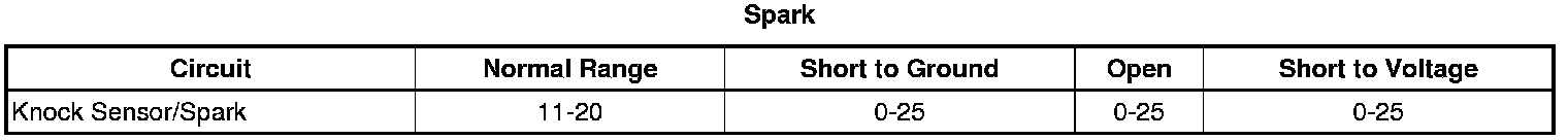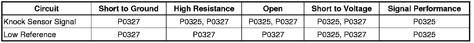 The Knock Sensor (KS) System enables the control module to control the ignition timing for the best possible performance while protecting the engine from potentially damaging levels of detonation. The sensors are located below each cylinder head on the engine block. The KS produces an AC voltage signal that varies depending on the vibration level during engine operation. The control module adjusts the spark timing based on the amplitude and the frequency of the KS signal. The control module receives the KS signal through a signal circuit. The control module learns a minimum KS noise level at idle and uses calibrated values for the rest of the RPM range. The control module should monitor a normal KS signal within the noise channel.