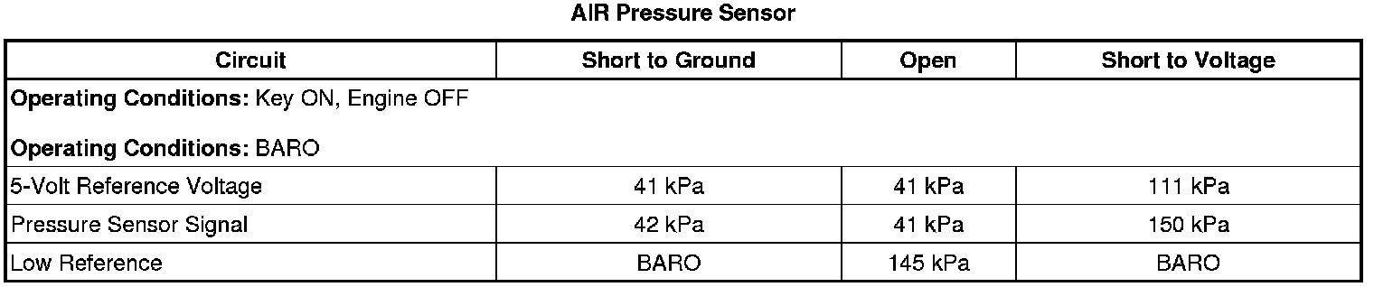 2. With the engine running, enable the AIR solenoid with a scan tool and observe that the AIR Pressure Sensor parameter equals approximately 8-10 kPa above BARO.