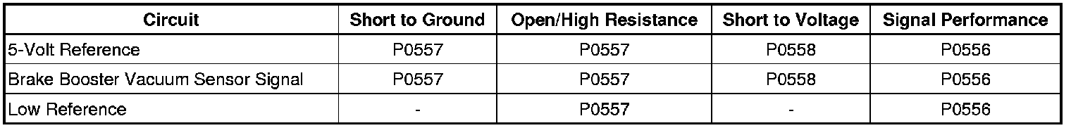 The ECM detects less than 0.04 volts on the brake booster sensor signal circuit for more than 12.5 milliseconds.