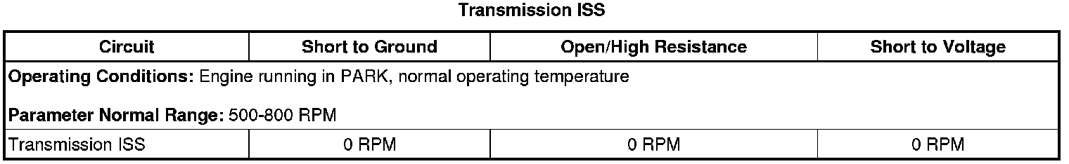 Start the engine in PARK and observe the transmission ISS on the scan tool while varying the engine speed. The transmission ISS should vary with the engine speed and not drop out.