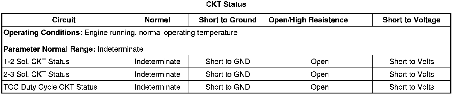Start and idle the engine. Using the scan tool output controls command the affected solenoid ON and OFF. Observing the CKT Status parameter on the scan tool for the affected solenoid, ensure the parameter displays OK.