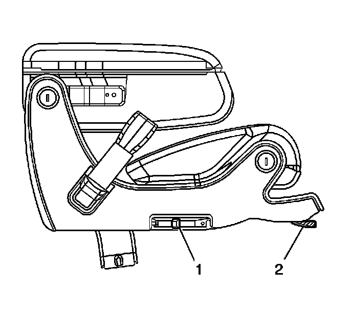 4. Lift the rear of the seat and pull rearward to disengage the front hook attachments (2).